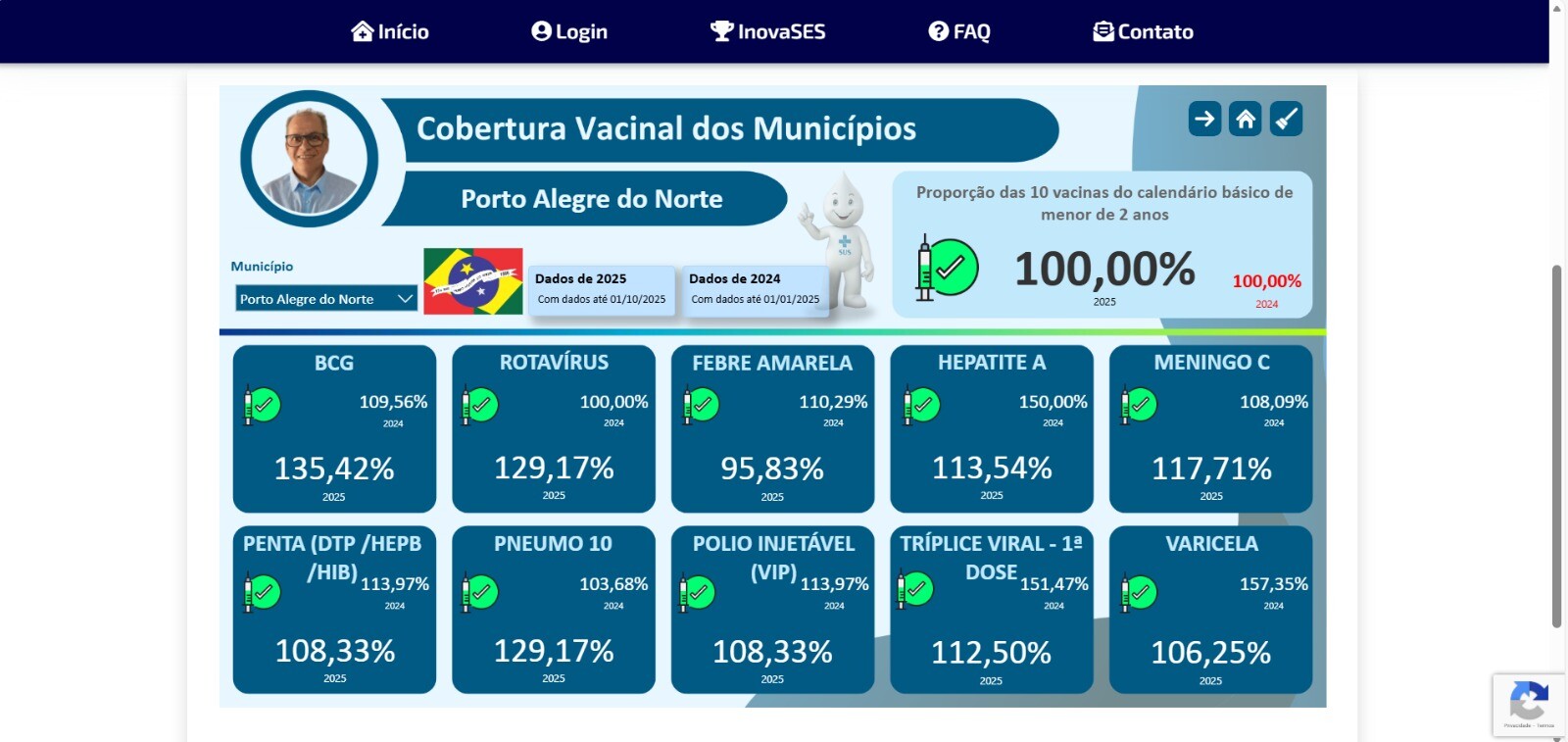 É com imensa alegria e gratidão que o município de Porto Alegre do Norte celebra um marco significativo na área da saúde pública. A cidade alcançou, com pleno êxito, a meta de cobertura vacinal, atingindo 100% das 10 vacinas do calendário básico para crianças menores de 2 anos.